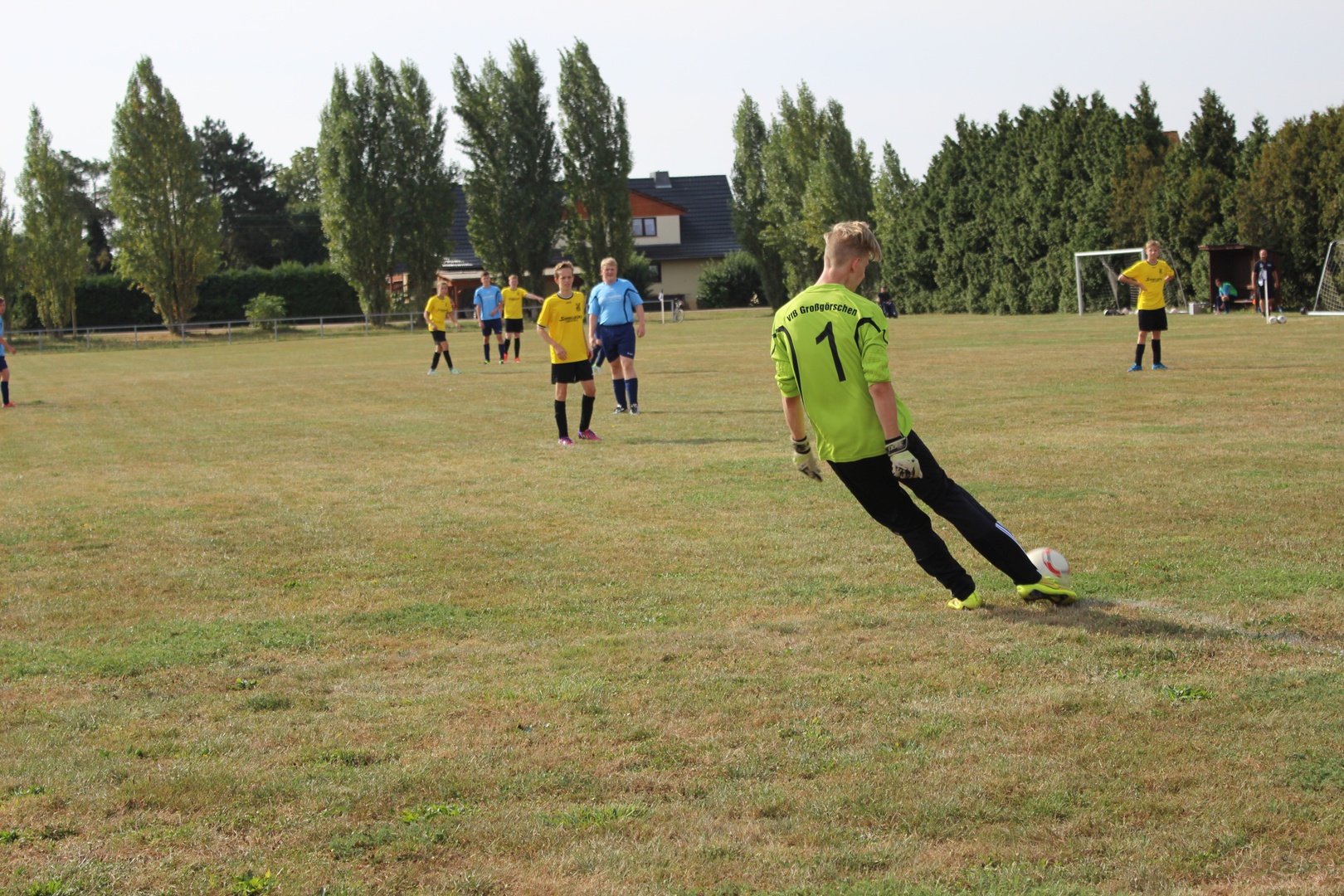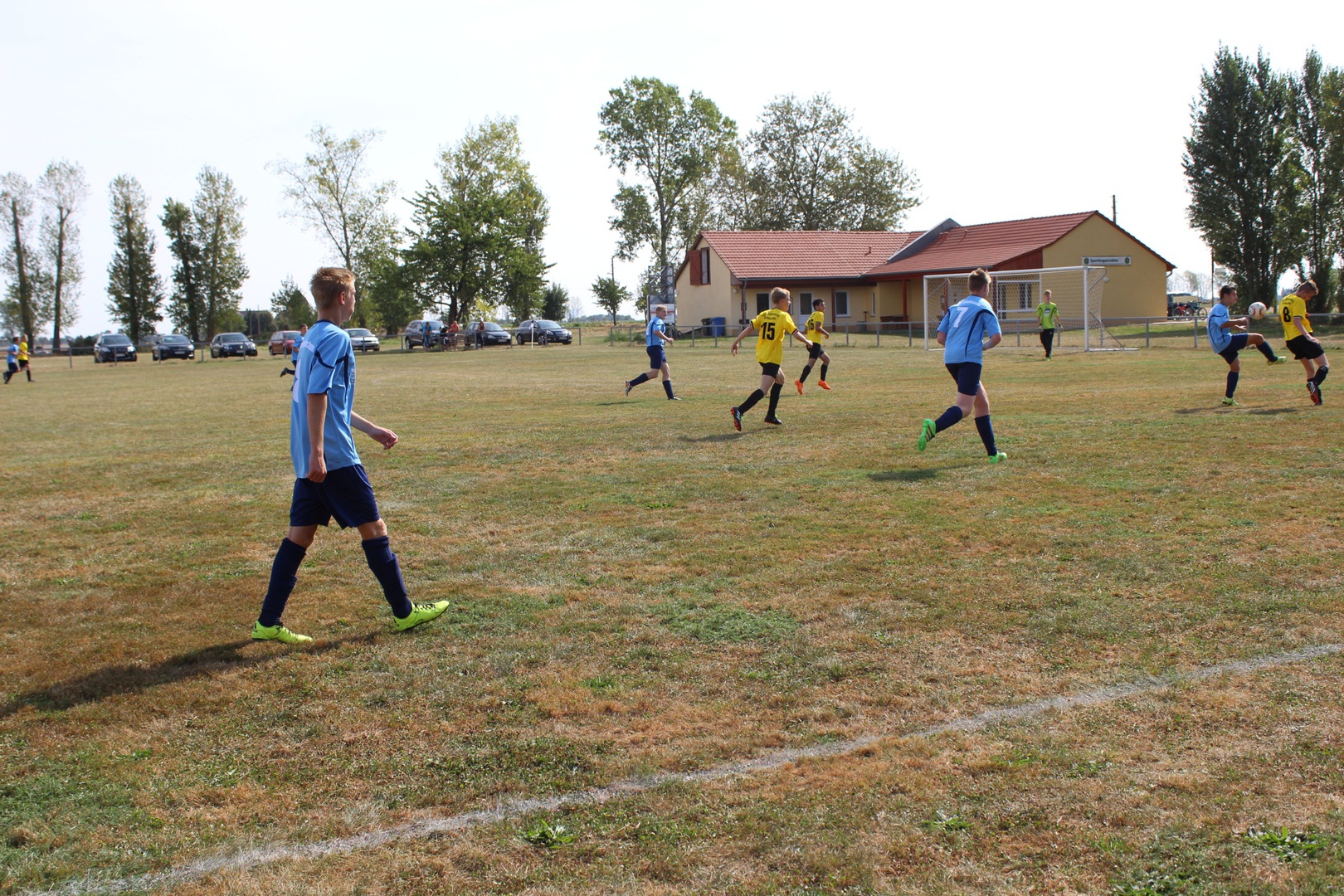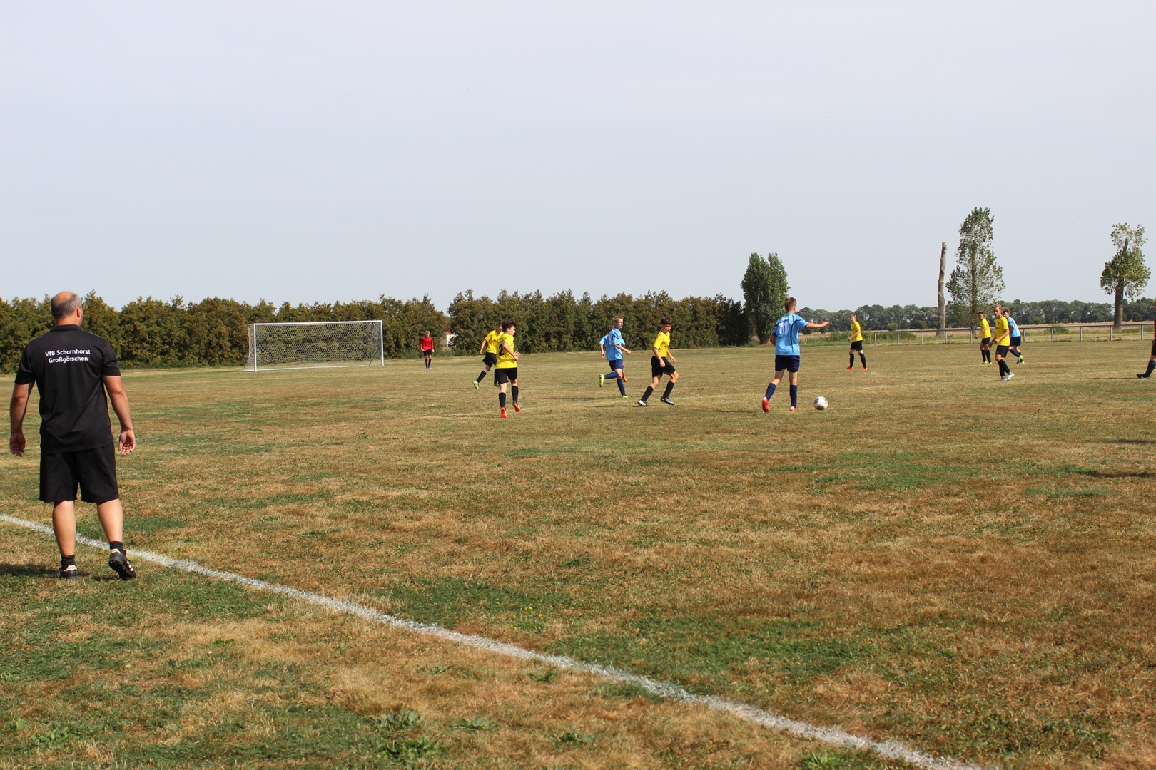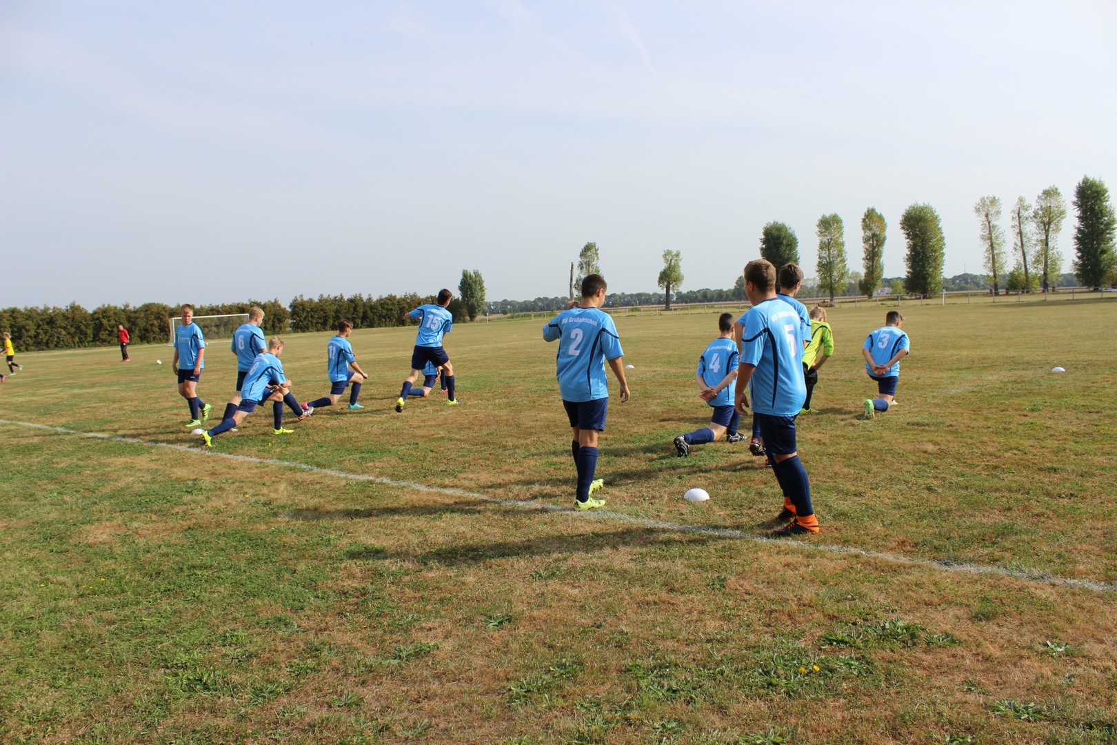 Bei sehr heißen Temperaturen, in Zahlen 27° C um 09:00 Uhr bei der Abfahrt, starten wir nach Leutzsch. Die Gastgeber hatten schon 2 Pflichtspiele, beide gewannen Sie (6:1 und 6:0). Leider waren wir nur mit 11 Mann angetreten. Unsere Spieler störte das anscheinend nicht so sehr wie mich. Bei den Temperaturen ohne Einwechsler, das wird kraftraubend.