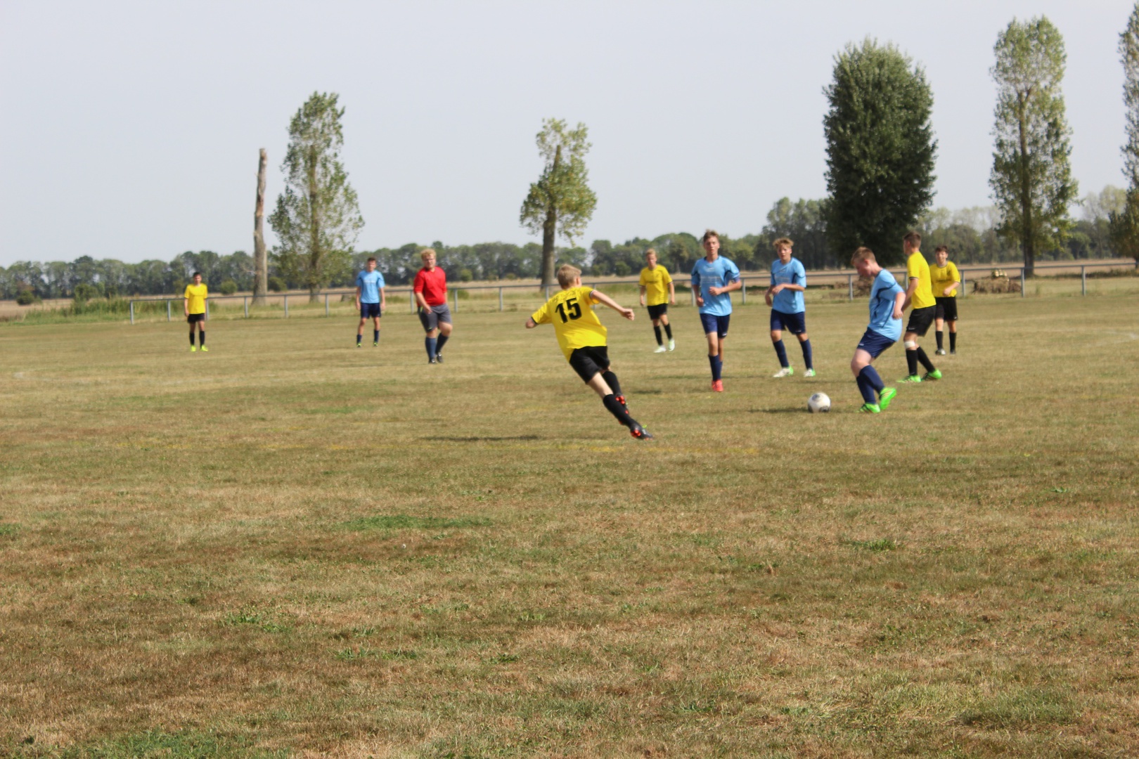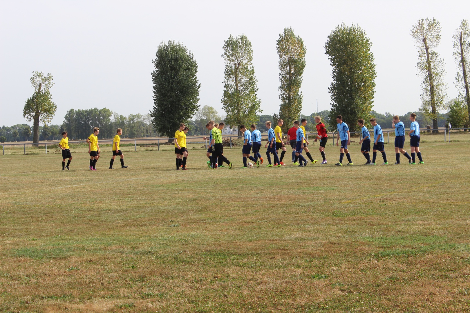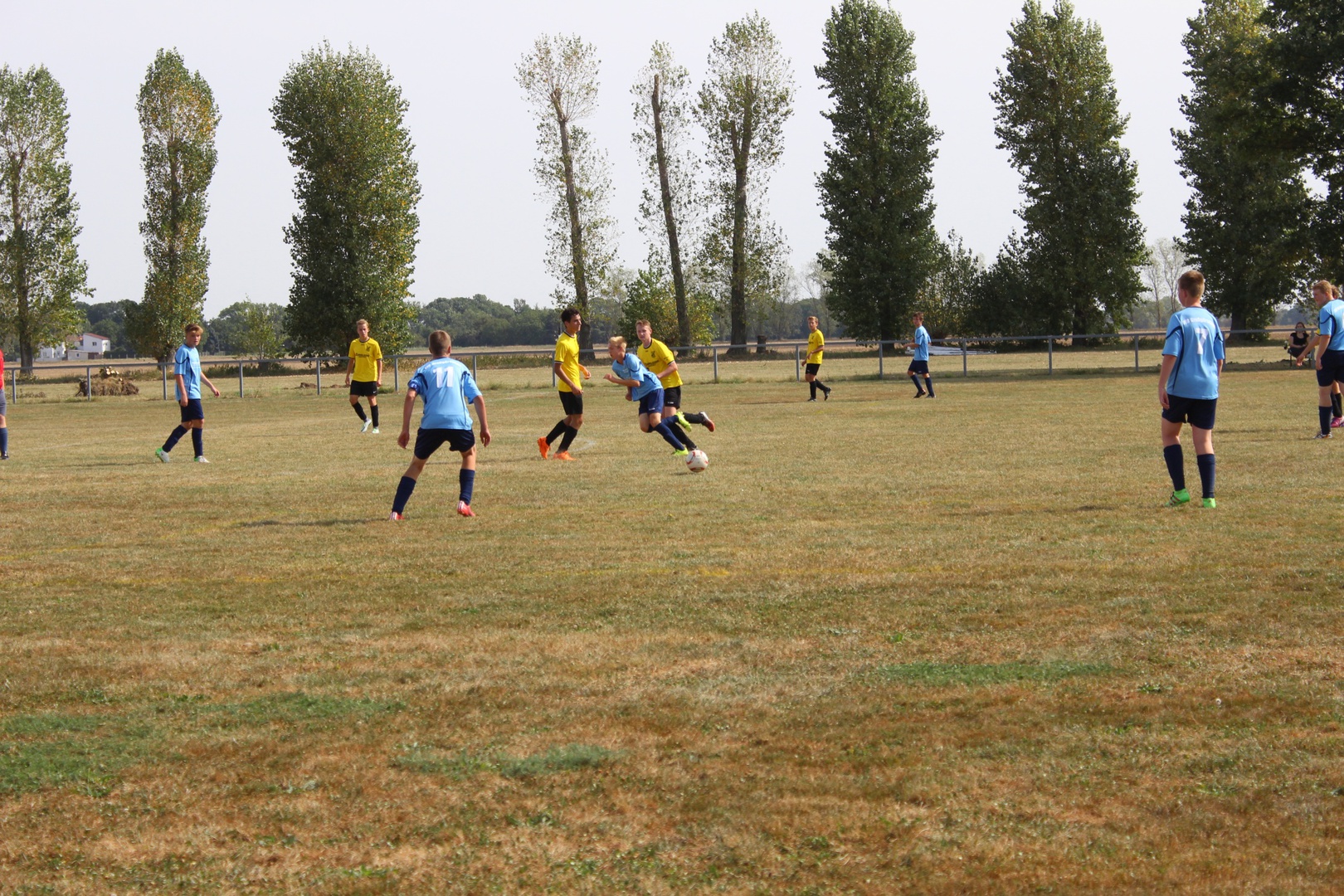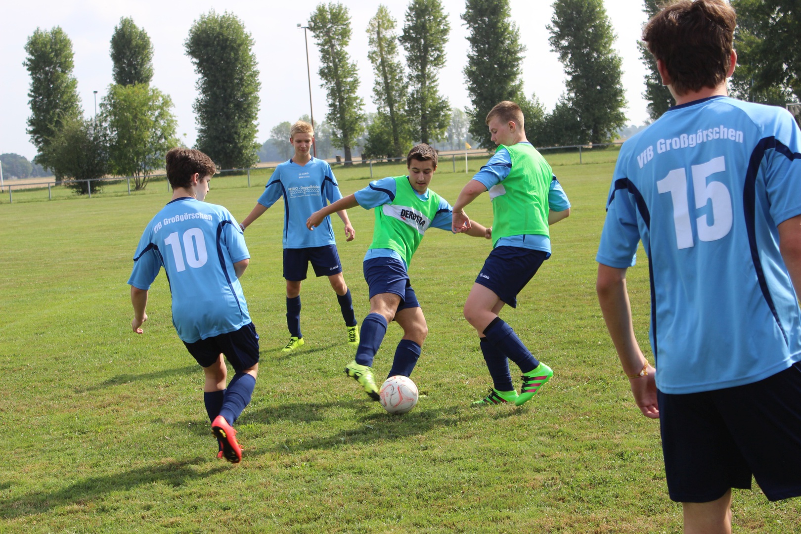Bei sehr heißen Temperaturen, in Zahlen 27° C um 09:00 Uhr bei der Abfahrt, starten wir nach Leutzsch. Die Gastgeber hatten schon 2 Pflichtspiele, beide gewannen Sie (6:1 und 6:0). Leider waren wir nur mit 11 Mann angetreten. Unsere Spieler störte das anscheinend nicht so sehr wie mich. Bei den Temperaturen ohne Einwechsler, das wird kraftraubend.