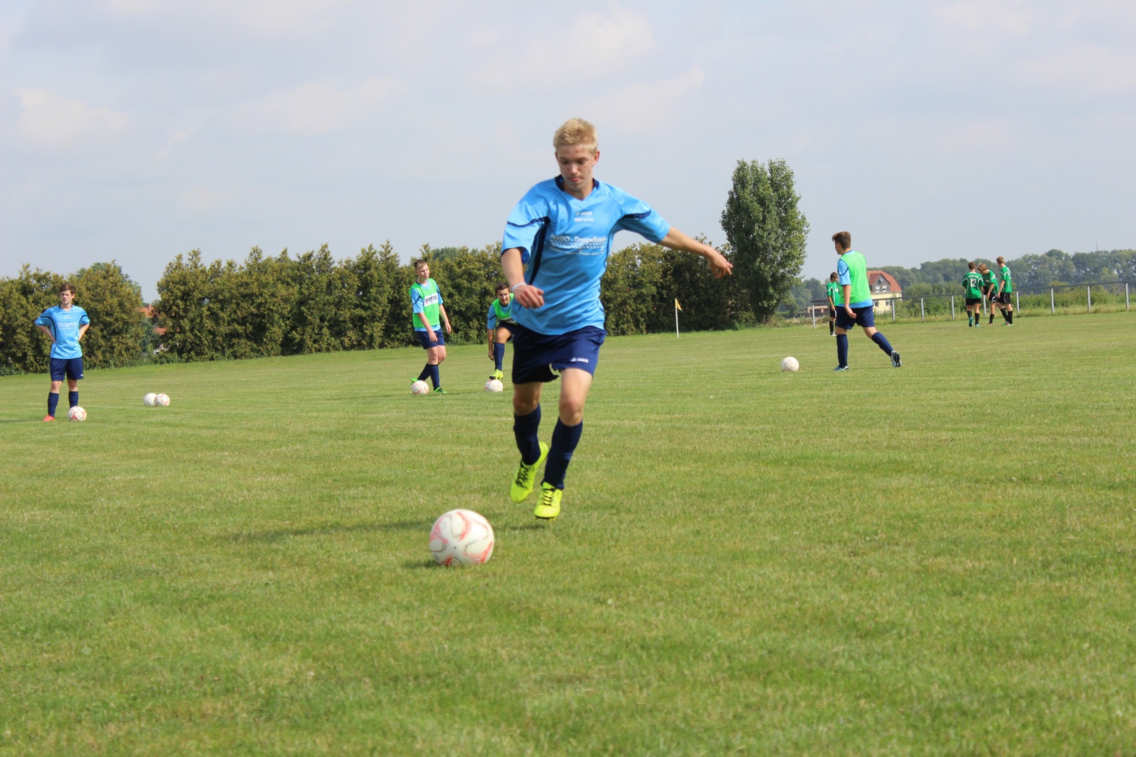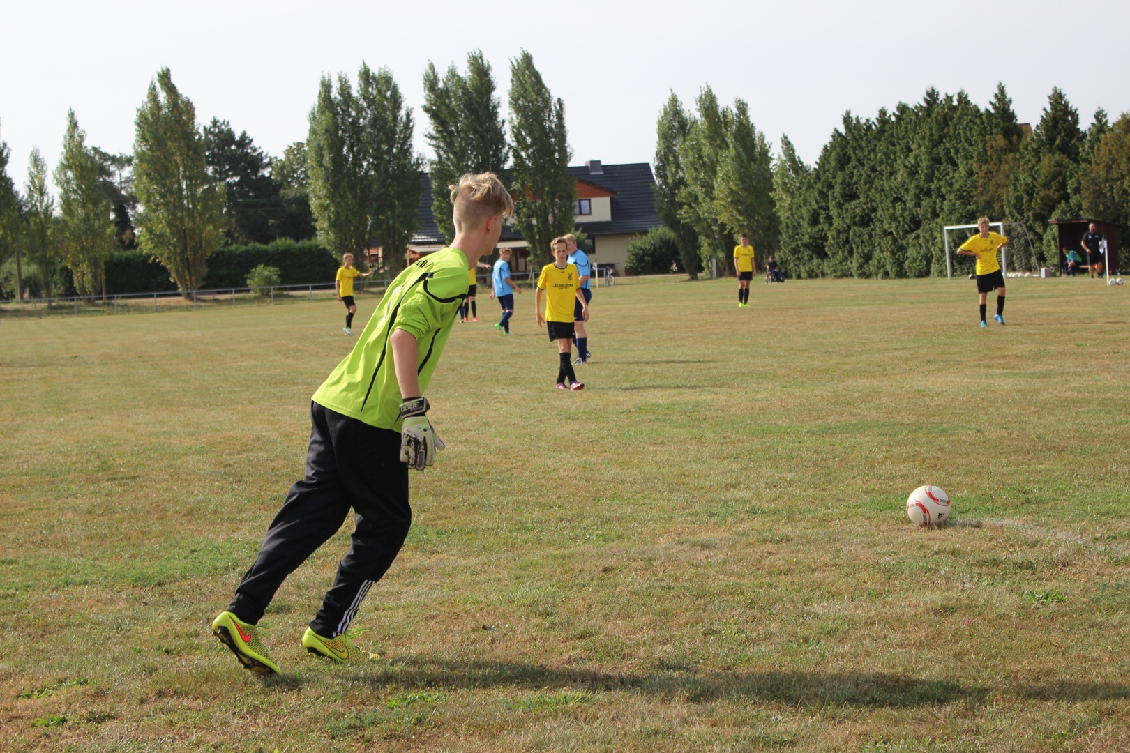 Nach nur einem Tag Pause bestritten wir heute ein weiteres Testspiel gegen den KSC. Einige Jungs beklagten noch leichte muskuläre Probleme. Der KSC spielt in der Stadtklasse, also eine Liga höher als wir. Da wir heute gegen eine B-Jugend spielen, erhoffte ich mir mehr Erkenntnisse über unseren derzeitigen Leistungsstand. Zu spät habe ich gemerkt dass für dieses Spiel kein Schiedsrichter angesetzt wurde. Der Co-Trainer des KSC erklärte sich bereit das Spiel zu pfeifen. Vielen Dank nochmal für das Engagement und die gute Schiedsrichter-Leistung.