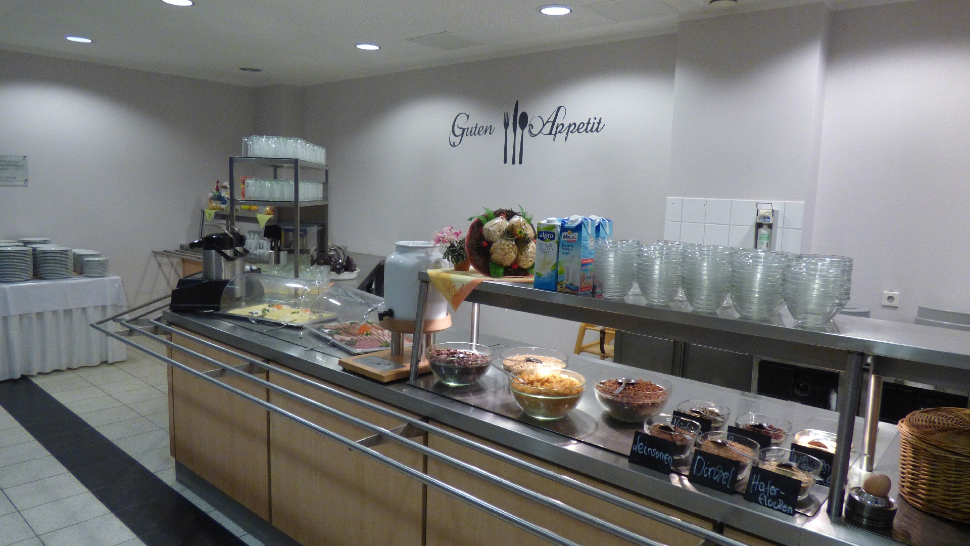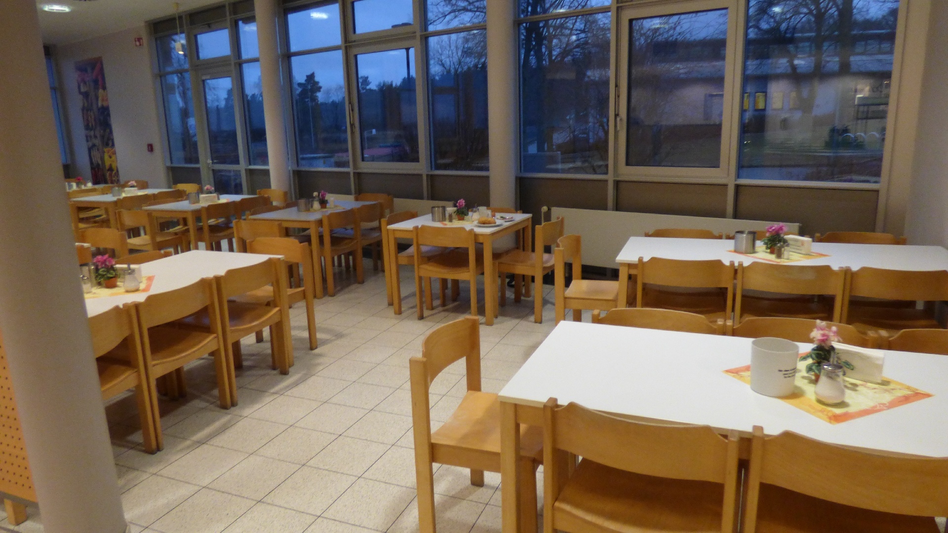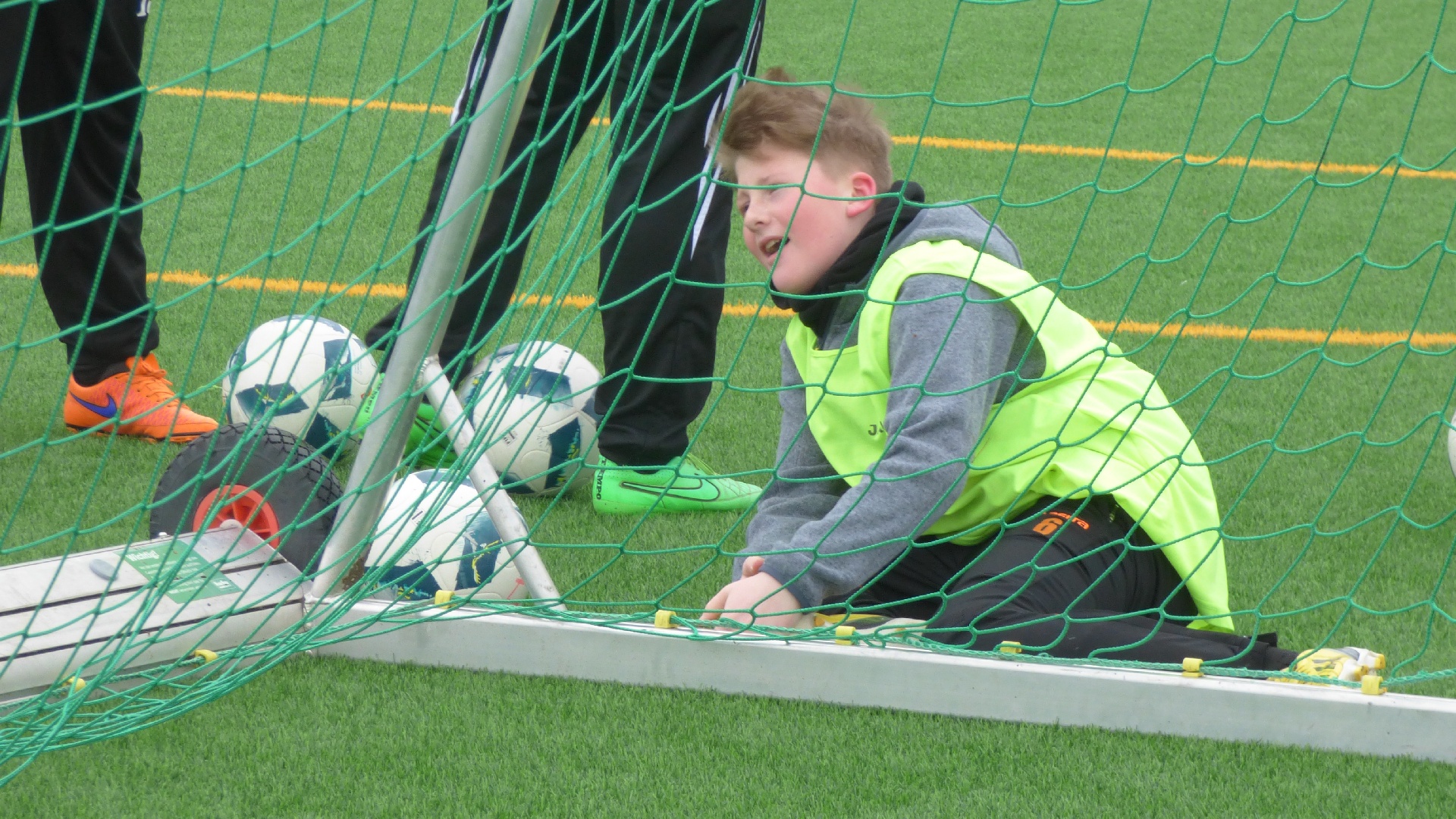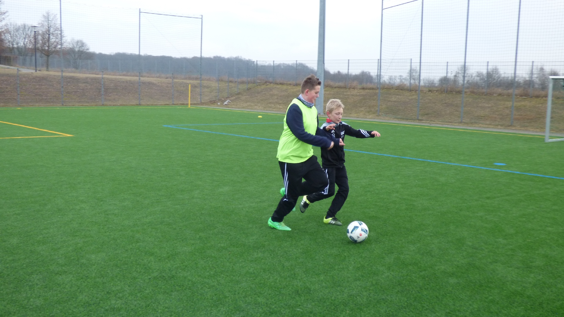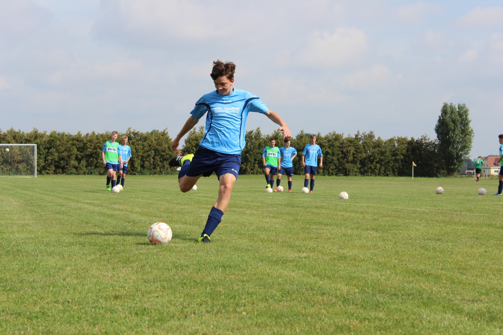 Für 7:00 Uhr war das Aufstehen angesetzt, damit wir gemeinsam 7:30 beim Frühstück sitzen konnten. 9:00 Uhr begann das 2,5-stündige Hallen-Training. Die Zeit verging wie im Fluge. Vor dem Mittagessen wurde kurz oder auch etwas länger geduscht und anschließend das Nudelbuffet geplündert. 13:30 stand dann eine 2-stündige Einheit auf dem Kunstrasenplatz an. Nach einer kurzen Ruhepause begab sich die D-Jugend wieder in die Turnhalle und die B-Jugend blieb noch länger auf dem Kunstrasenplatz. Jetzt zeigten sich bei einigen Spielern die ersten Müdigkeitserscheinungen. Nach einer reichlichen Stunde merkte man dann allen die Erschöpfung an. Deshalb haben die Trainer entschieden, die jeweiligen Trainingseinheiten unabhängig voneinander etwas früher zu beenden. Und das war auch gut so, denn die Kräfte sollten ja noch für eine abschließende Trainingseinheit nach dem Abendessen reichen. Als letzter Programmpunkt stand an diesem Samstag noch eine kleine Auflockerungsübung mit Spiel an. Das Flutlicht strahlte über den ganzen Platz. Doch nach ca. 15 Minuten machte es klack und es war dunkel. Wir hatten es verpasst rechtzeitig einen Chip nachzulegen. Es dauerte einige Minuten bis das Licht wieder nach und nach anging. So konnte das Abschlussspiel mit etwas Verspätung angepfiffen werden. Ein großer Teil konnte im Wettkampfmodus noch einmal einen Gang höher schalten und neue Kräfte mobilisieren. 21:15 Uhr war das Training für diesen Tag beendet. Die D-Jugend bereitete sich auf die Nachtruhe vor und die B-Jugend wurde um 21:45 noch einmal in die Kabine eingeladen, um den Trainingstag auszuwerten. Redselig waren die Jungs nicht. Sogar die Zunge hatte schlapp gemacht. Dafür hatten sie ein Flüssigkeitsdefizit, welches wir ausgeglichen haben. Dann war auch für die Jungs der B-Jugend Schluss.