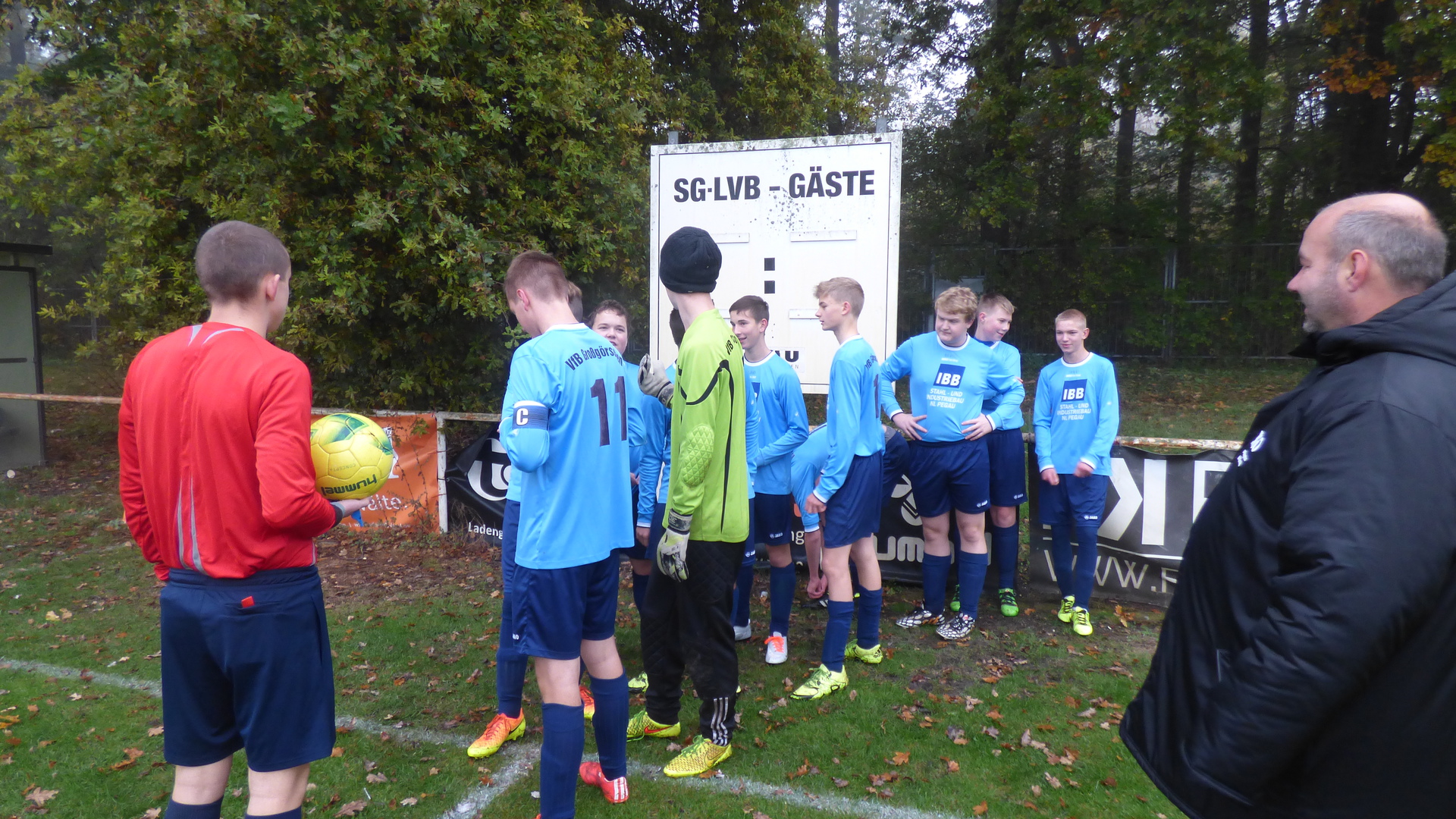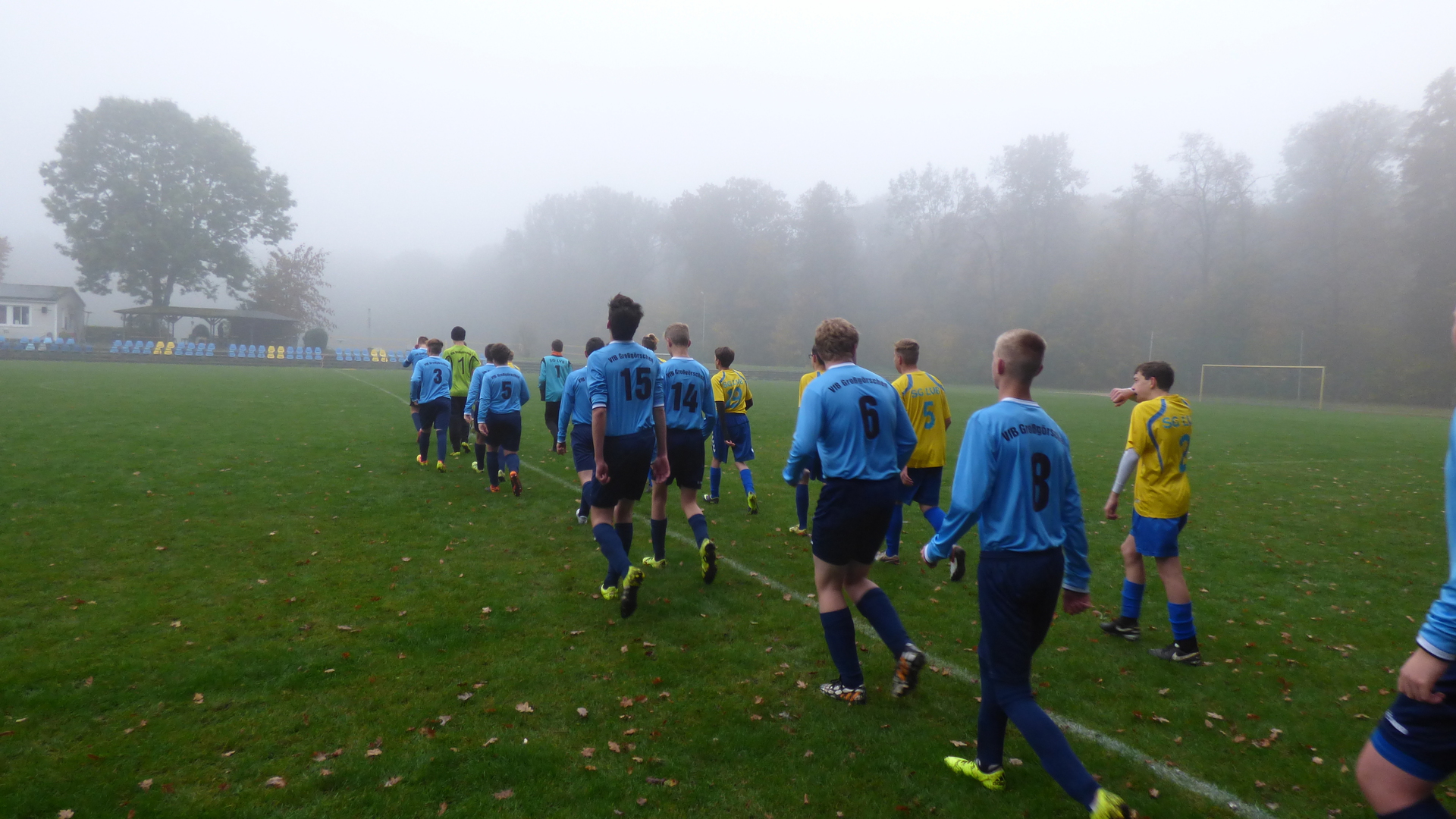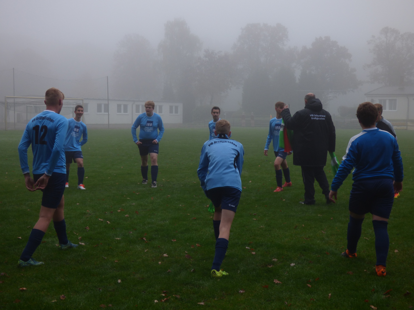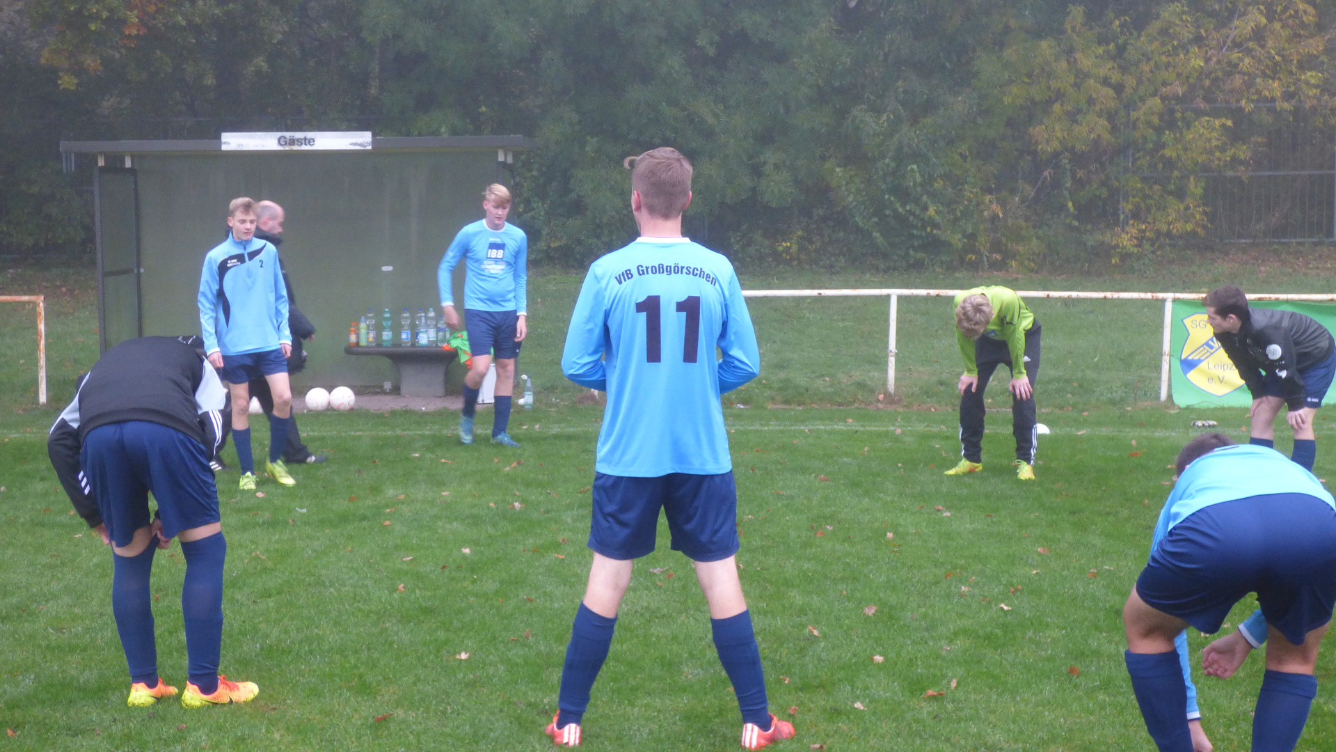 Sonntag 7:15 Uhr Abfahrt zum Spiel. Bei dieser Zeit hatte ich so meine Bedenken, dass alle munter am Treffpunkt stehen. Heute spielten wir gegen den Tabellenletzten, den SG LVB II. Wir wollten auf keinen Fall diesen Gegner unterschätzen und das Spiel konzentriert angehen. Leicht verspätet wurde das Spiel bei leichten Nebel und nasskalten Wetter angepfiffen.