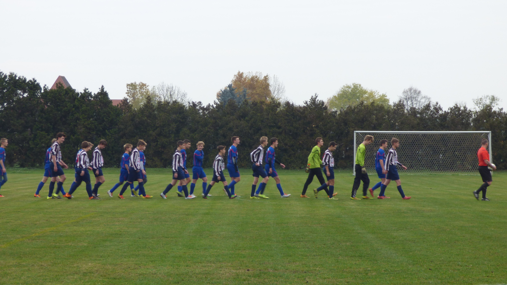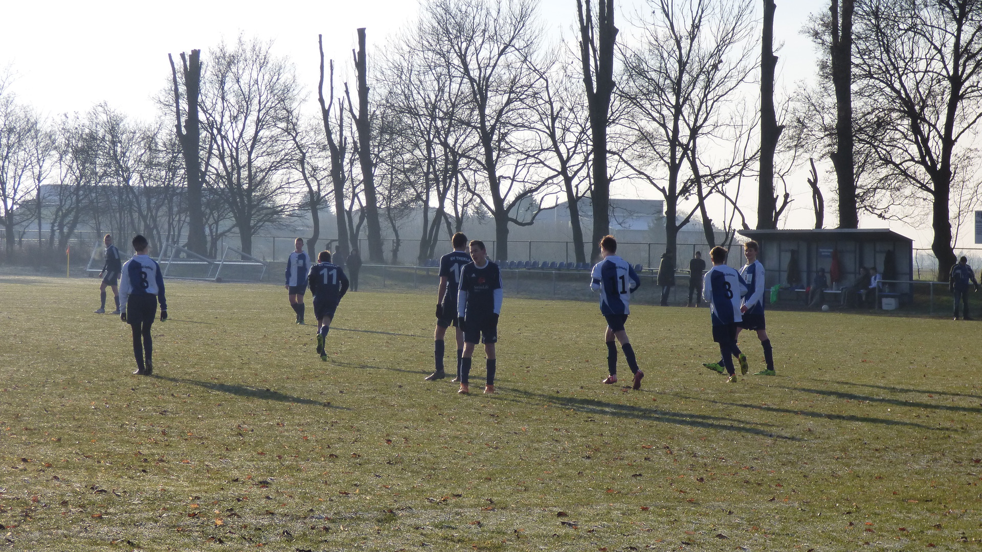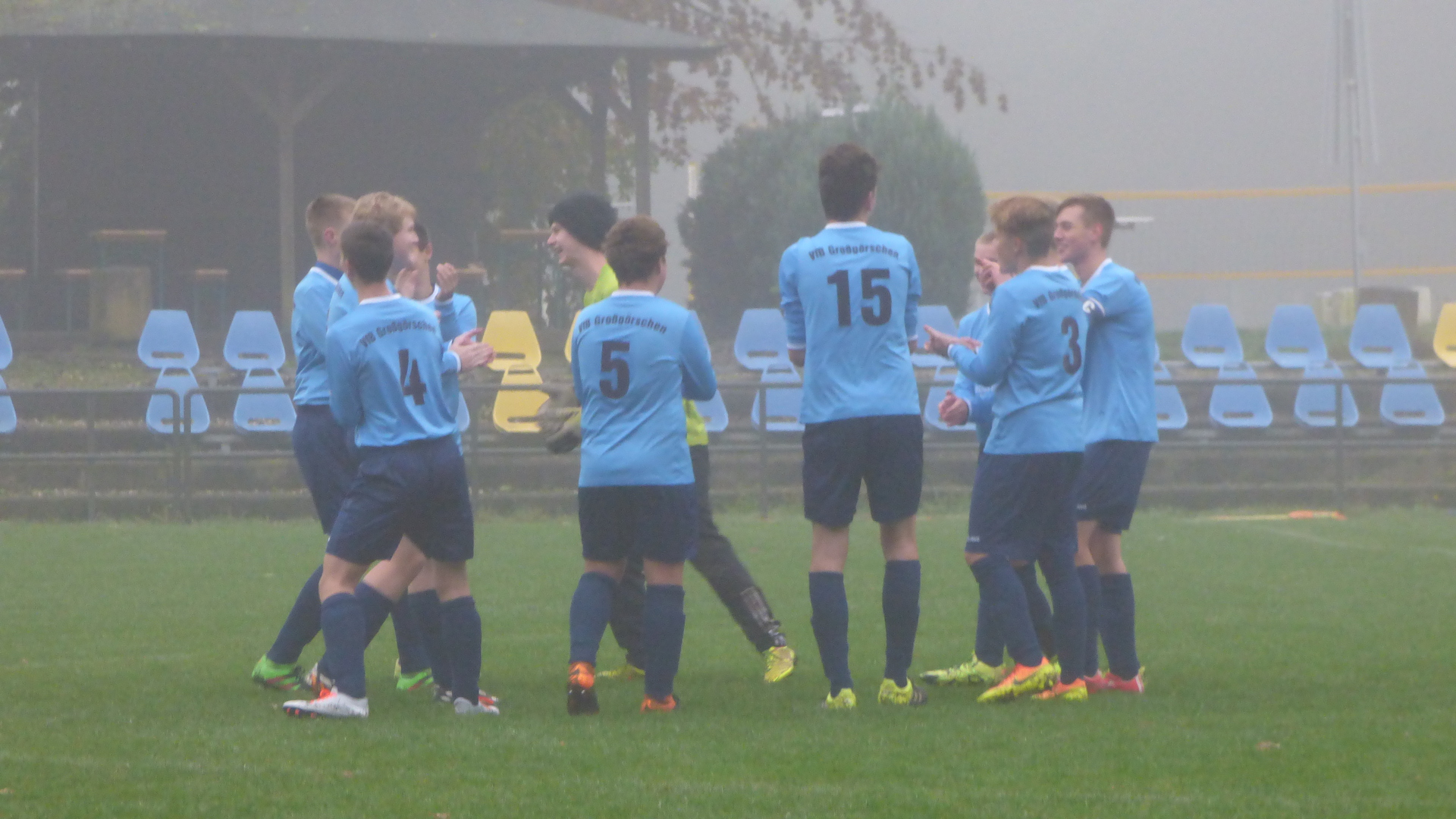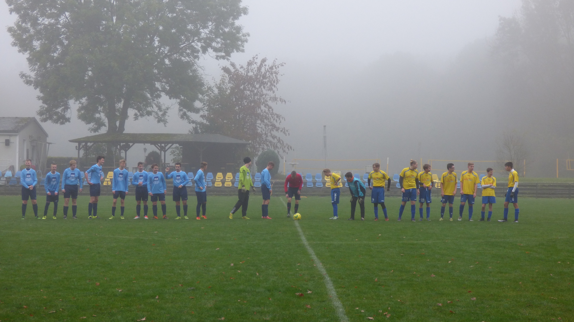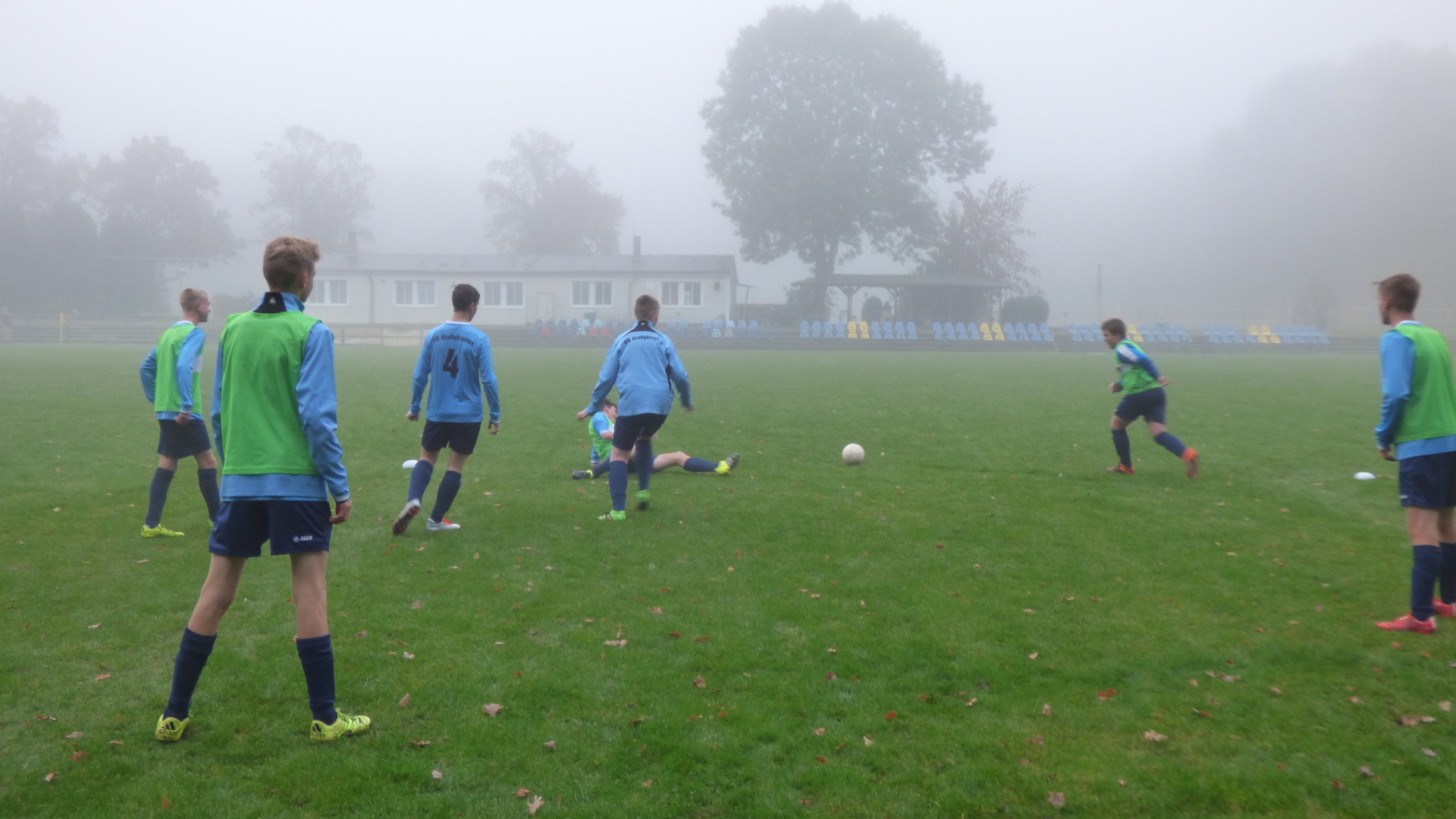Sonntag 7:15 Uhr Abfahrt zum Spiel. Bei dieser Zeit hatte ich so meine Bedenken, dass alle munter am Treffpunkt stehen. Heute spielten wir gegen den Tabellenletzten, den SG LVB II. Wir wollten auf keinen Fall diesen Gegner unterschätzen und das Spiel konzentriert angehen. Leicht verspätet wurde das Spiel bei leichten Nebel und nasskalten Wetter angepfiffen.