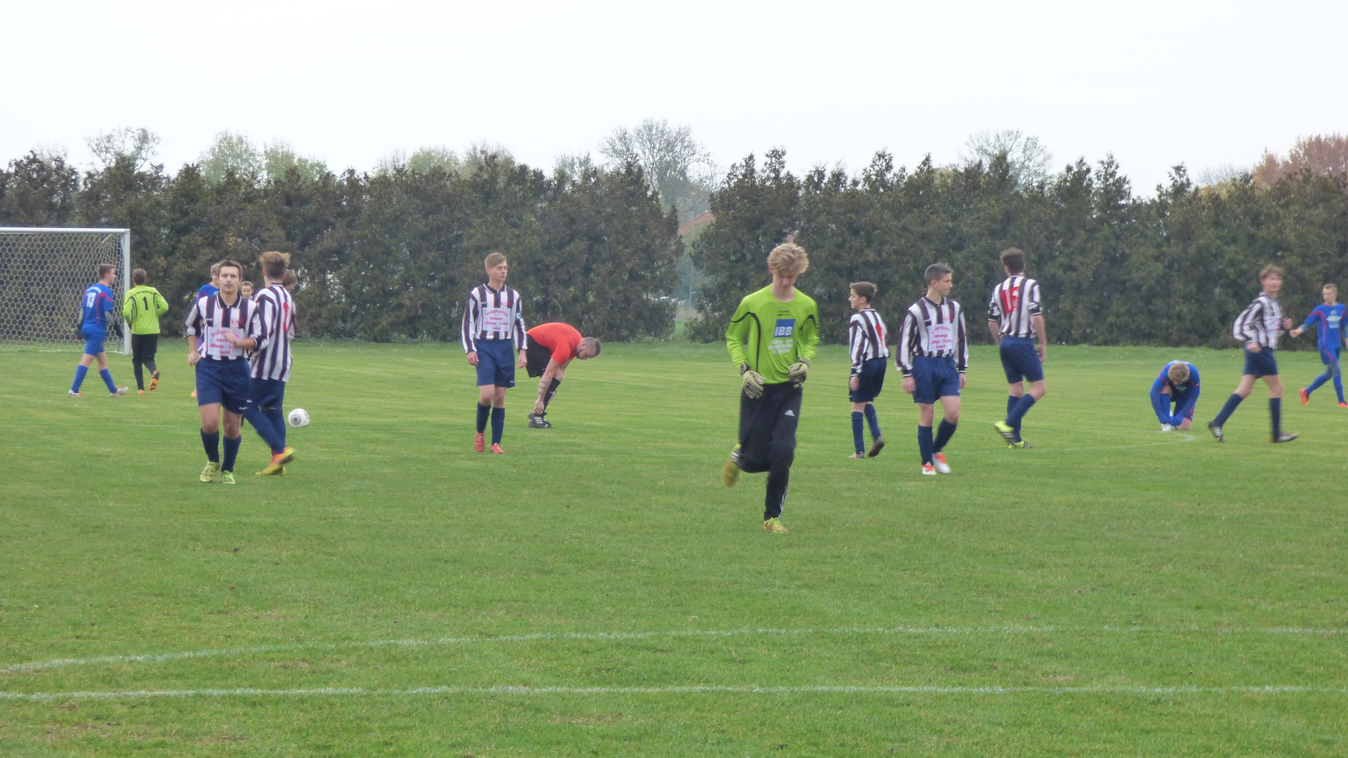 Zweite Halbzeit: Da sich ein weiterer Spieler vom Brehmer SV auch noch verletzt hatte und demzufolge die Mannschaft nur noch aus 6 Spielern bestand, durfte der Schiri nicht wieder anpfeifen und das Spiel wurde abgebrochen.