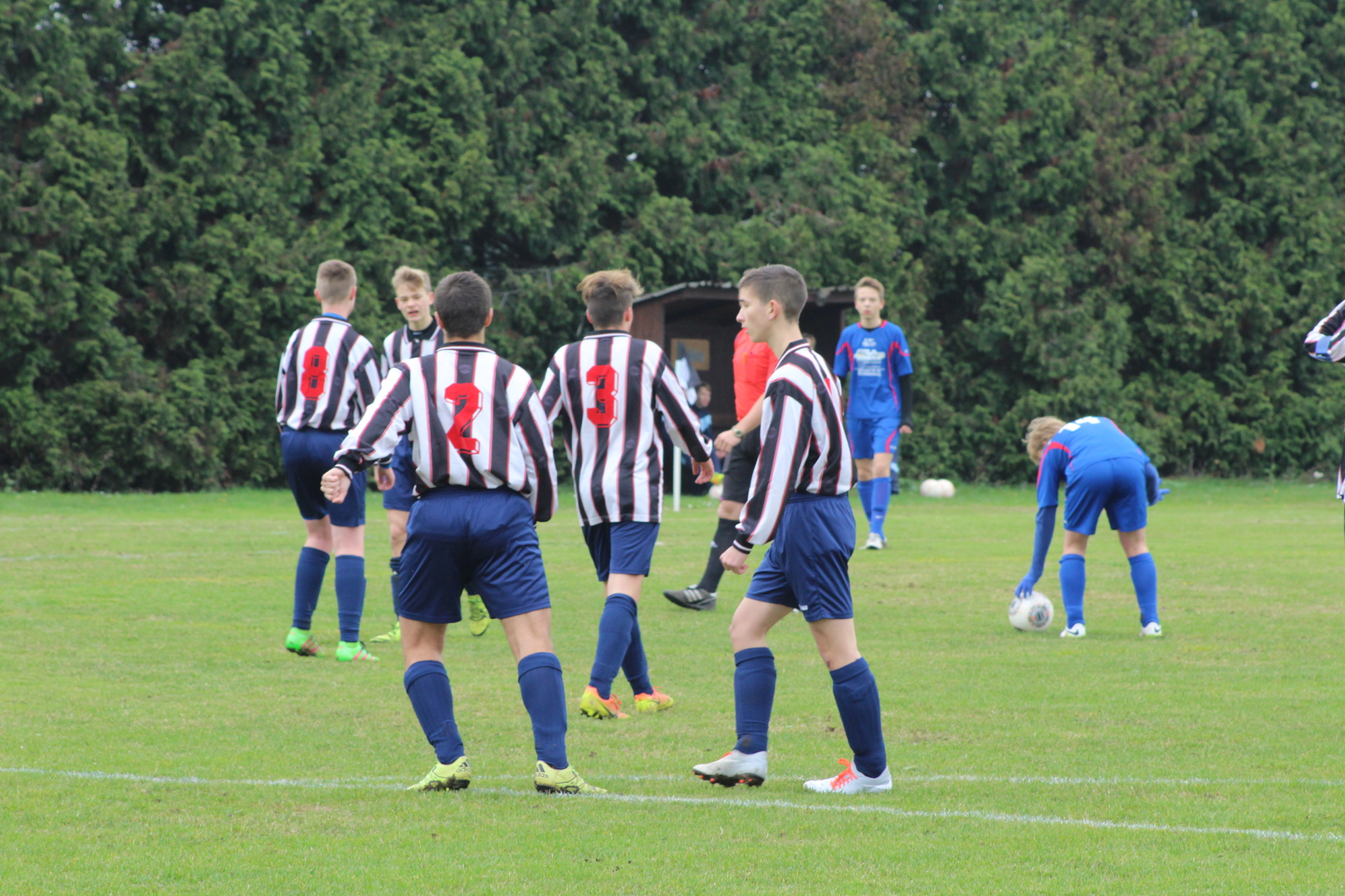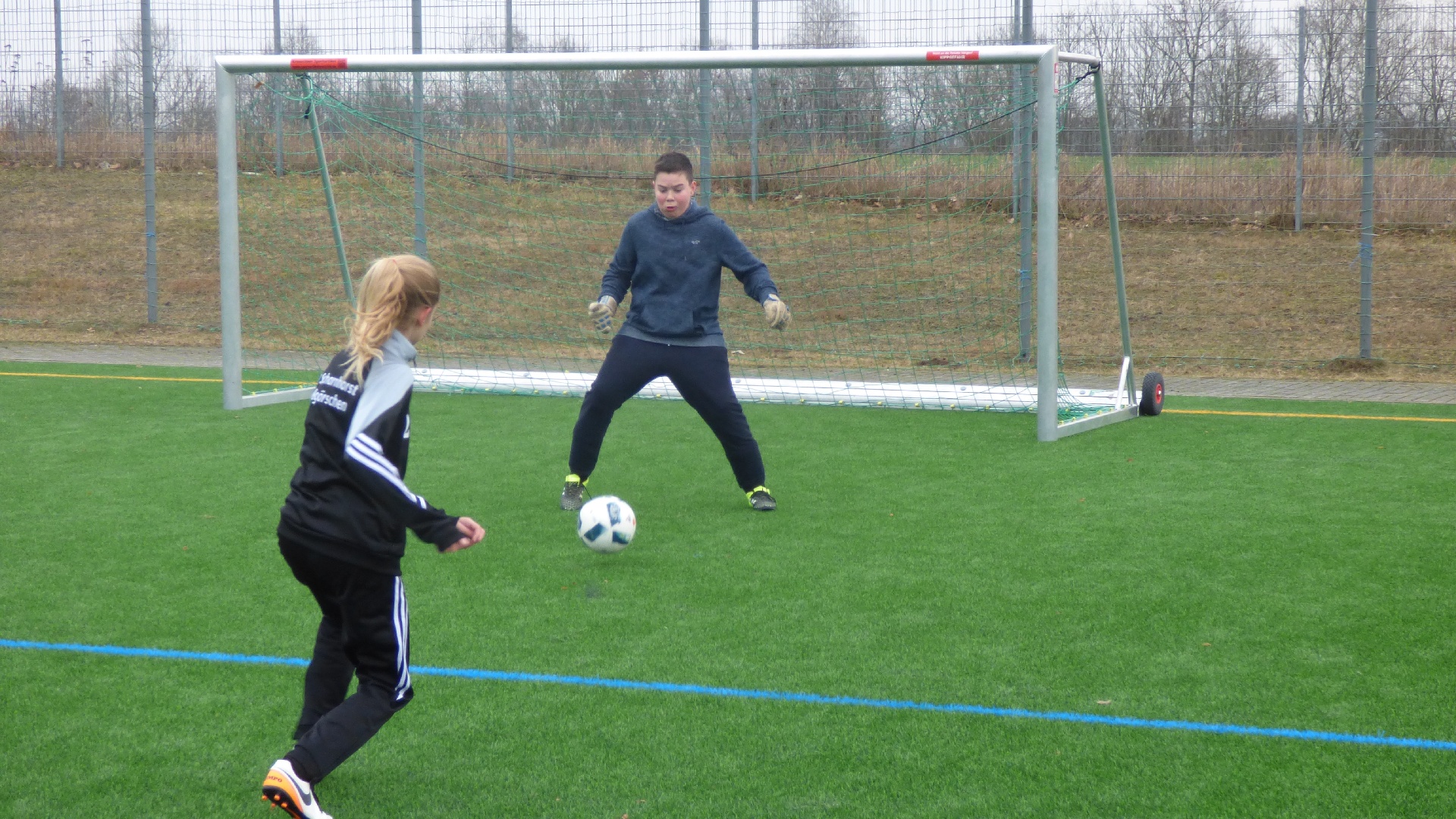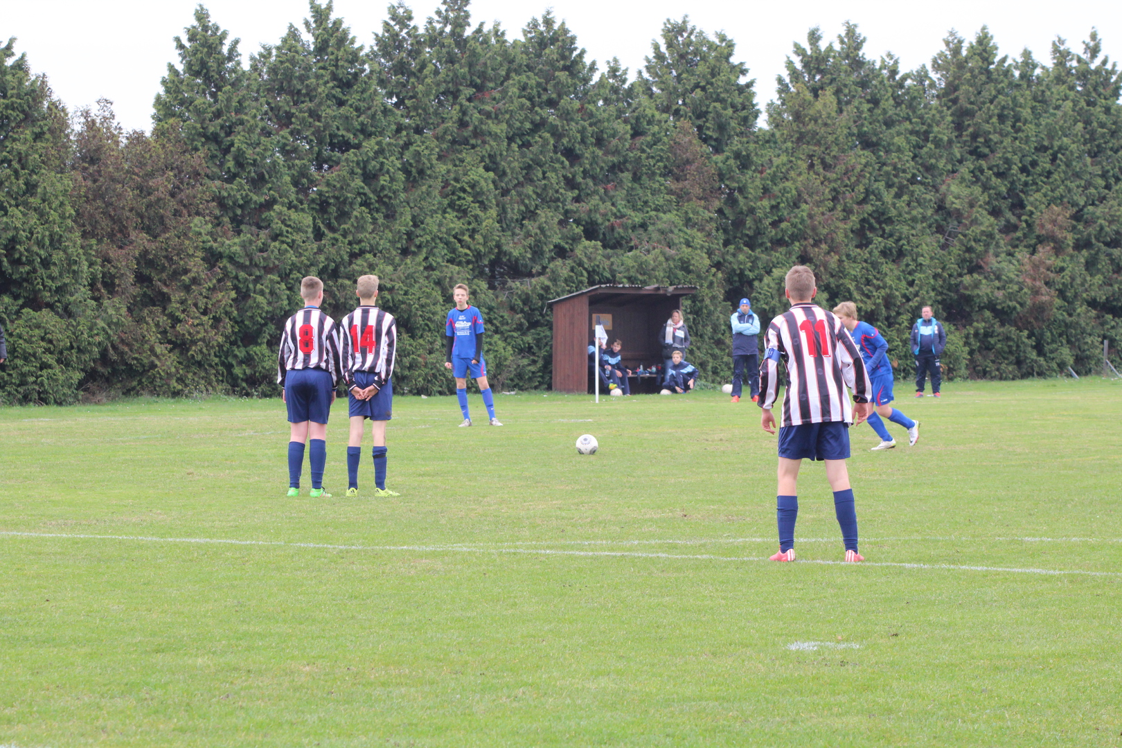Lange geplant und bis zur letzten Minute gebangt, ob das Testspiel stattfinden kann. Der lang anhaltende Regen ließ erst eine Entscheidung kurz vor der geplanten Anstoßzeit zu. Der Tatsache geschuldet, dass einige Spieler zur Zeit nicht zur Verfügung stehen, habe ich unsere Formation auf ein 4-1-4-1 umgestellt. Beim ersten gemeinsamen Aufeinandertreffen am Anfang der Saison, konnten wir das Spiel mit 5:2 für uns entscheiden. Alle waren hoch motiviert und wollten unbedingt den Sieg. Originalzitat: „Ich möchte morgen in der Schule nicht hören, dass wir Luschen sind!“ Mit diesen Worten wurde gezeigt wie wichtig das Spiel für einige unserer Spieler war.