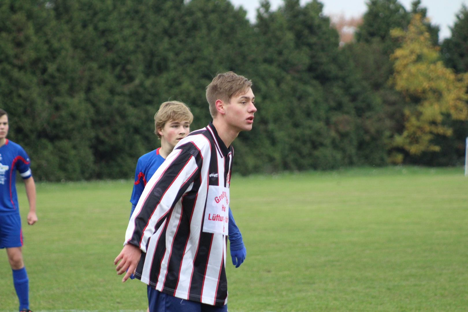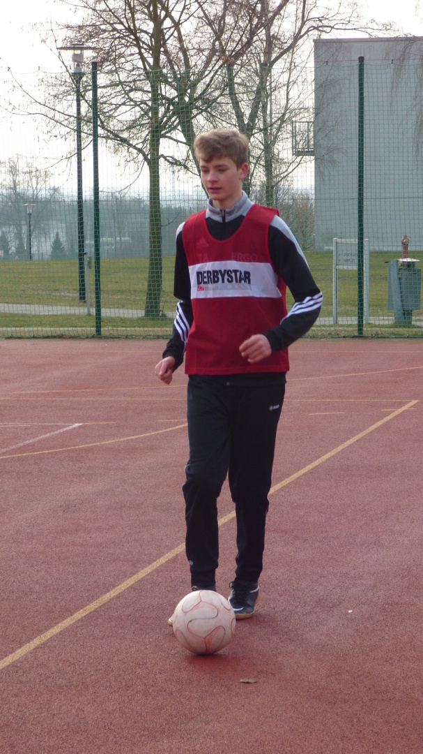 Erste Halbzeit: Wir hatten Anstoß und spielten den Ball sicher in den eigen Reihen. Dass wir sehr viel Respekt vor der B 1 hatten, merkte ich daran, dass noch keine Risikopässe gespielt wurden. Mit zunehmender Spieldauer wurden wir sicherer und erspielten uns die ersten Torchancen. Genau in dieser Phase liefen wir in einen Konter. Die Abwehrspieler hatten nicht gemerkt, dass die gegnerischen Stürmer die Seite getauscht hatten. So lagen wir nach ca. 10 Minuten mit 1:0 durch Sascha Hantschmann hinten. Da mir die Spielansätze bis dahin gefallen haben, war ich nicht sehr beunruhigt. Wir spielten konzentriert weiter und Moritz belohnte uns mit dem Ausgleichstreffer. Kurz vor den Halbzeitpfiff zog Kevin noch einmal ab und erzielte das 1:2.