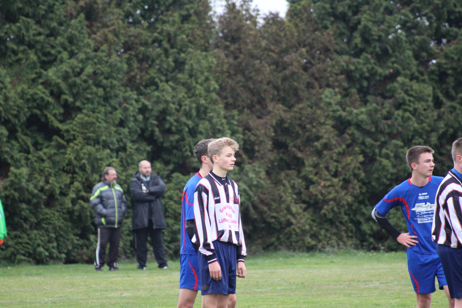 Auf die einzelnen Halbzeiten möchte ich gar nicht groß eingehen. Die Jungs standen heute in dieser Formation das erste Mal auf dem Platz und waren auch etwas nervös. Dies legte sich gleich nach dem Anpfiff. Wir zeigten gleich das wir gewinnen wollten und machten von Anfang an Druck. Nach anfänglichen Abstimmungsschwierigkeiten wurde unser Spiel zunehmend besser und wir belohnten uns mit dem 1:0. Die „alten Herren“ tauchten immer wieder vor unserem Tor auf, wir schafften es die ersten 30 Minuten unser Tor sauber zu halten, so ging es mit einer 1:0 Führung in die erste Halbzeitpause.