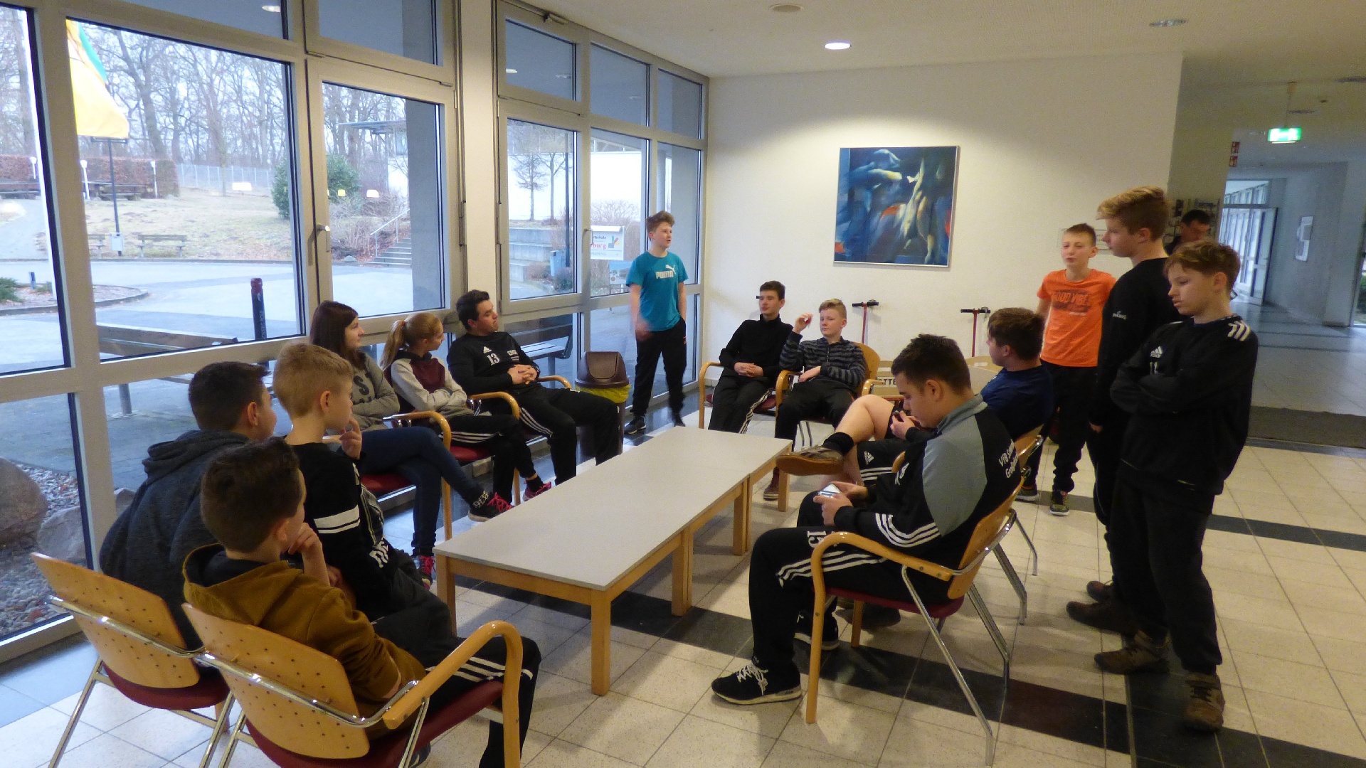 Seit Anfang September liefen die Planungen für das Trainingslager. Die Entscheidung fiel schnell auf die Landessportschule in Osterburg. Im Vorfeld wurden die Belegungspläne, Nutzung der Bowlingbahn, der Schwimmhalle sowie des Seminarraumes mit der Sportschule abgesprochen. Dankenswerterweise konnten wir für den Transport Kleinbusse vom Kreissportbund und Europcar nutzen. Schnell erklärten sich auch zwei Fahrer bereit, die ebenfalls als Co-Trainer, Fotografen und Mädchen für alles jederzeit im Einsatz waren. Um am Freitag pünktlich 13:00 Uhr starten zu können, wurden für einen Teil der Schüler ein Freistellungsantrag geschrieben. Für 15 Spieler der D-Jungend, 9 Spieler der B-Jugend und 5 Trainer und Betreuer ging nun die Reise los.
