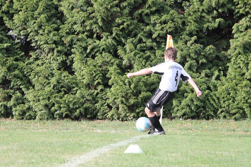 Am Samstag bestritten wir unser letztes Punktspiel der Saison. Durch das knappe Ergebnis vom Hinspiel waren wir gewarnt. Gleich zu Beginn erspielte sich der VfB ein klares Übergewicht, welches sich in ersten guten Aktionen widerspiegelte. Doch an der dicht gestaffelten Abwehr biss sich unsere Mannschaft noch die Zähne aus. So dauerte es bis zur Mitte der ersten Hälfte, ehe wir zum 1:0 vollendeten. Noch kurz vor der Pause fiel das 2:0 durch einen schönen Kopfballtreffer.