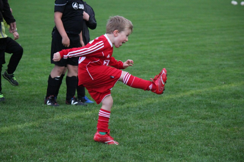 Spiel: Man hat gleich gesehen, dass unsere Gäste schon viel mehr Wert auf Taktik und Zusammenspiel legten. Soweit sind wir noch lange nicht. Bei uns waren noch alle Kinder Richtung Ball orientiert und so ziemlich alle auf einem Haufen. Heute sagen wir dazu, systemlos, Wirrwarr oder Durcheinander. In 10 Jahren sagen wir dazu, ballorientiertes Verschieben und Pressing. Es liegt also nur in der Sichtweise des Betrachters. Eine weitere Schwierigkeit war herauszufinden in welches Tor wir schießen müssen. Das klappte aber mit zunehmender Spieldauer immer besser.