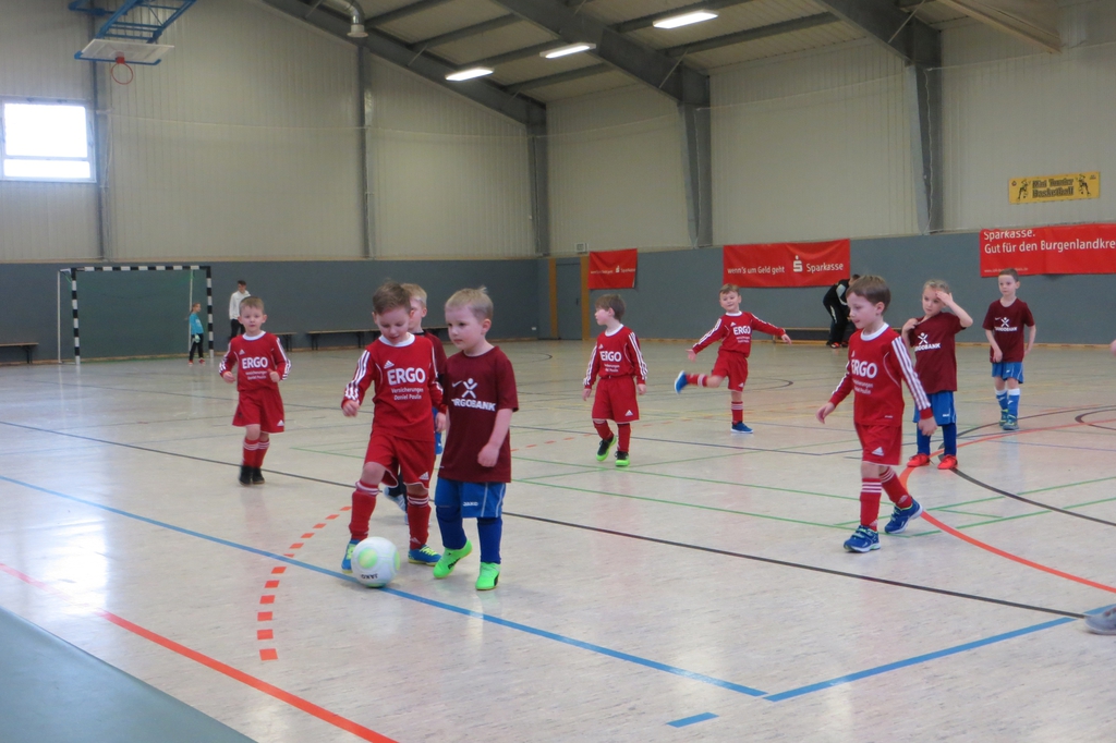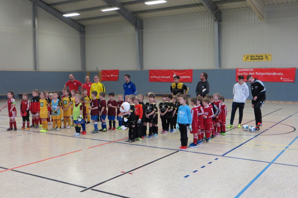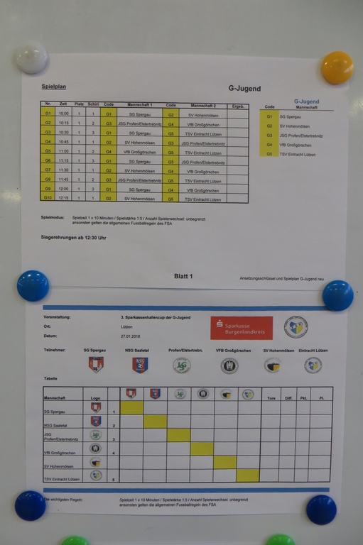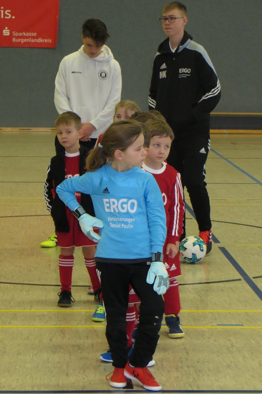 Spielbericht: Der KFV Burgenlandkreis hat zur Bestenermittlung in der Altersklasse der G-Jugend eingeladen. Schwer zu verstehen ist, dass bei fast jedem Turnier nach anderen Regeln gespielt wird. Heute war es eine Mischung aus Hallenfußball- und Futsal-Regeln. Das hab ich kaum verstanden, geschweige denn die Kinder. Aber wir sind ja nicht dahin gefahren um über Regeln zu diskutieren, sondern um Fußball zu spielen.
