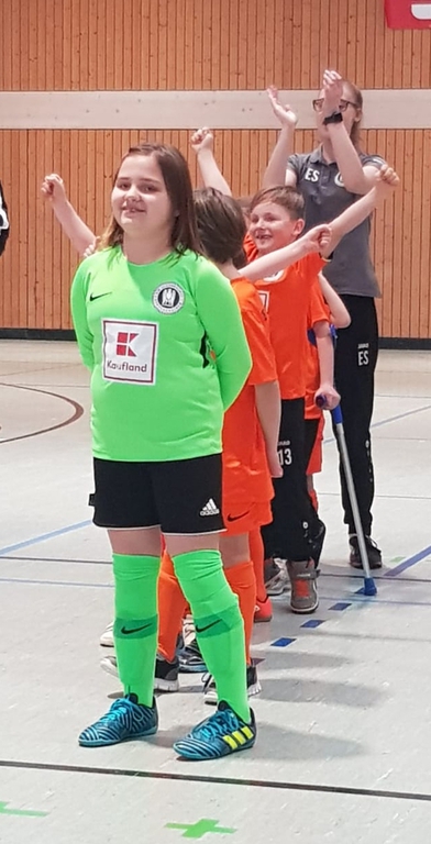 Fazit: Mit dem 5. Platz bei der Endrunde der Hallenkreismeisterschaft können wir voll zufrieden sein. Trotz der schweren Gegner haben die Trainer Emily und Lenny an der offensiven Aufstellung festgehalten. Es war schön den Kindern zuzuschauen, denn Sie haben alles versucht und hart um diesen Platz gekämpft.