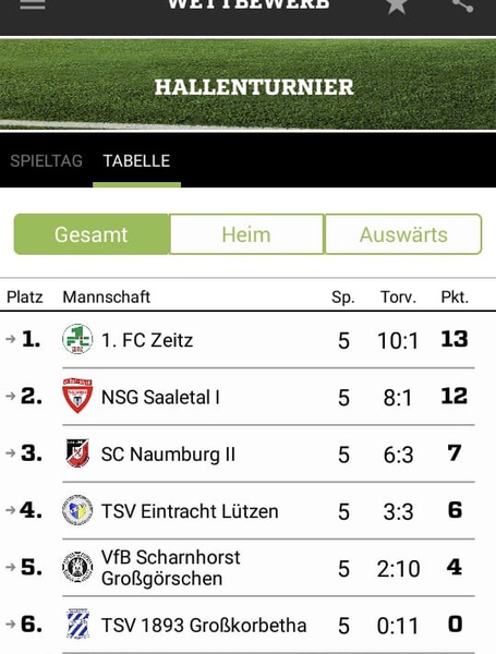 Turnier: Unser erster Gegner war NSG Saaletal II (Zorbau). Wir kennen uns durch einige Freundschaftsspiele, welche immer sehr knapp ausgingen. Heute standen wir uns das erste Mal in einem Pflichtspiel gegenüber. Unser Ziel war es, gut in das Turnier zu starten. Von Beginn an entwickelte sich ein Spiel auf das Zorbauer Tor. Nach 7 Minuten stand ein 5:0 für uns auf der Anzeigetafel.