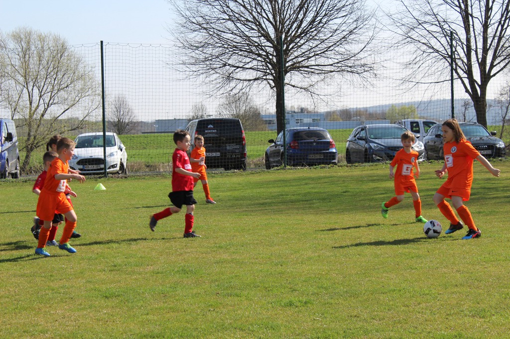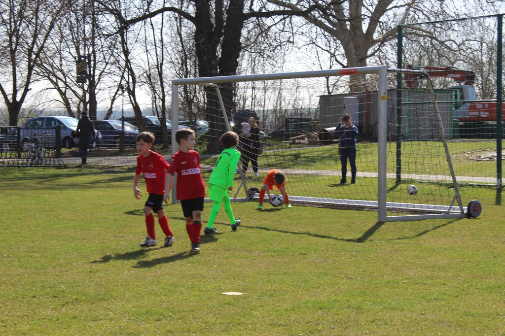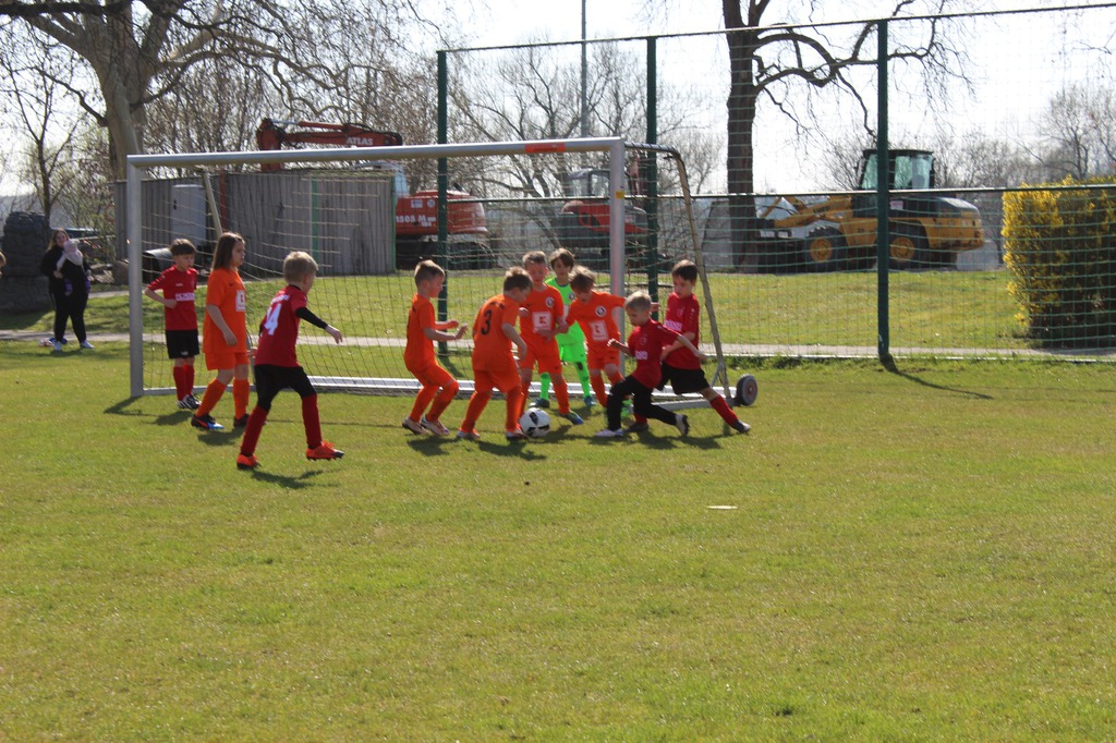 Spiel: Erste Minute 1:0! Eine Zeigerumdrehung später das 2:0 für die Gastgeber. Beides waren Schüsse aus der zweiten Reihe und unhaltbar unter die Latte gehämmert. Willi, der heute das erste Mal in dieser Saison im Tor stand, war schon etwas niedergeschlagen. Bei den Eltern und Trainern fing das Rechnen im Kopf schon an. Oje wie viel wird es denn heute für unsere Kleinen geben. Zum Glück gib es bei unseren Spielern nicht solche Überlegungen. Auf dem Platz wurde gekämpft und von nun an wurden nur noch wenige Schüsse auf unseren Kasten zugelassen. Der ein oder andere Schuss der dann doch auf unseren Kasten kam, war für Willi sichere Beute. Wir konnten durch Bennet im Verlauf der ersten Halbzeit noch drei Tore bewundern und auch die Gastgeber kamen zu einem weiteren Tor. Mit einem Stand von 3:3 ging es in die Halbzeitpause. Die zweite Halbzeit begann und das Spiel war weiterhin sehr ausgeglichen. Beide Hüter verhinderten mit schönen Paraden weitere Tore. Beide Trainer rotierten in Ihren Mannschaften durch, damit alle genügend Spielzeiten oder eine kleine Verschnaufpause. Am Ende hatten wir das glücklichere Händchen. Denn in der Schlussminute konnten wir noch 2 Treffer erzielen. Mit Jonas und Eva im Sturm wurde das Pressing eingeleitet, im Mittelfeld arbeiteten Emil, Benjamin, Leandro und Bennet stark gegen den Ball und in der Abwehr stand Liya über weite Teile des Spiels sehr sicher. Auch die Positionswechsel in der Mannschaft haben heute sehr gut geklappt.